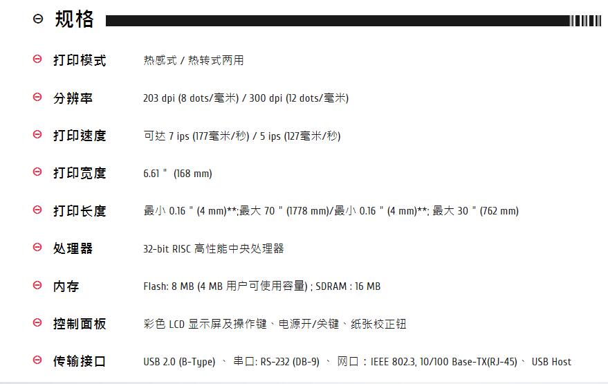 分辨率203dpi及300dpi高性能6吋工業(yè)型條碼打印機(jī);