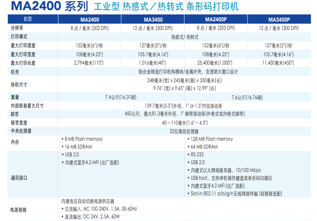 8 MB Flash及16 MB SDRAM內(nèi)存(MA240/MA340)、128 MB Flash及64 MB SDRAM內(nèi)存(MA240P/MA340P)