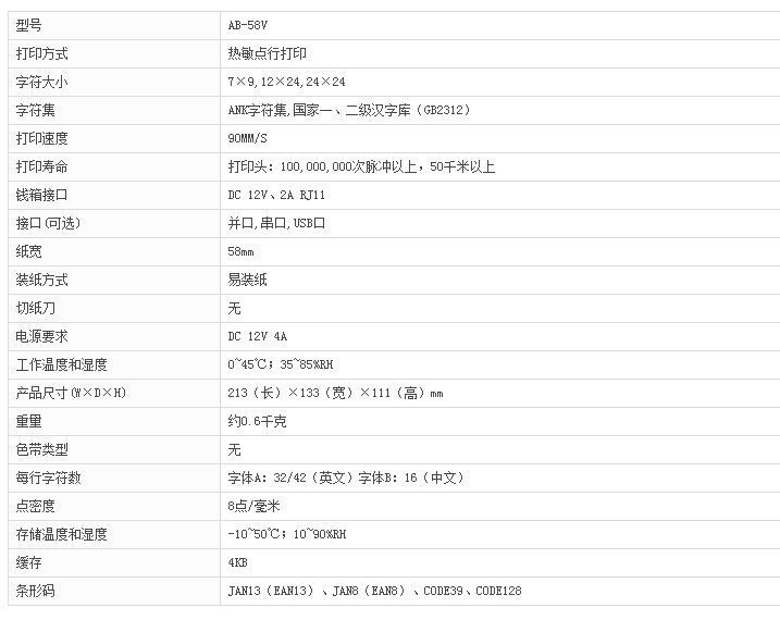 打印速度快,使用壽命長(zhǎng),可靠性高。 自帶中文字庫(kù)。 打印頭壽命可達(dá)100.000.000次脈沖以上。 支持WINDOWS圖形方式打印。 分辨率達(dá)到203DPI。 提供串行、并行、USB等多種接口選擇。