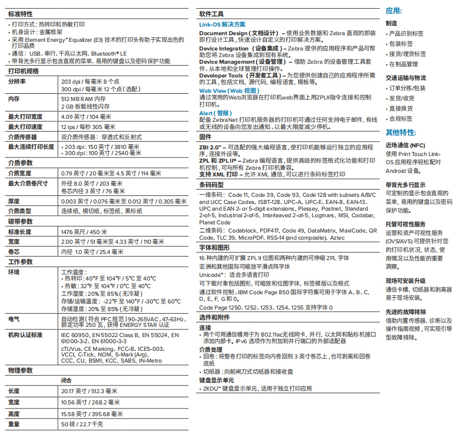 多種標(biāo)準(zhǔn)通信選項(xiàng)(包括USB、串行、千兆以太網(wǎng)以及Bluetooth? LE)使ZT510易于與現(xiàn)有系統(tǒng)集成和連接各種網(wǎng)絡(luò)。也可選配并行、帶Bluetooth? 4.0 的 802.11a/c無(wú)線(xiàn)網(wǎng)卡、USB Host和IPv6。