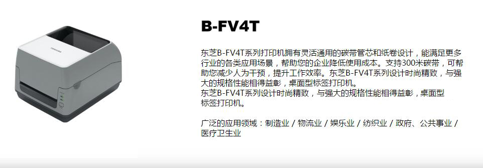 東芝B-FV4T系列打印機(jī)擁有靈活通用的碳帶管芯和紙卷設(shè)計(jì),能滿足更多的行業(yè)的各類應(yīng)用場(chǎng)景,幫助您的企業(yè)降低使用成本。